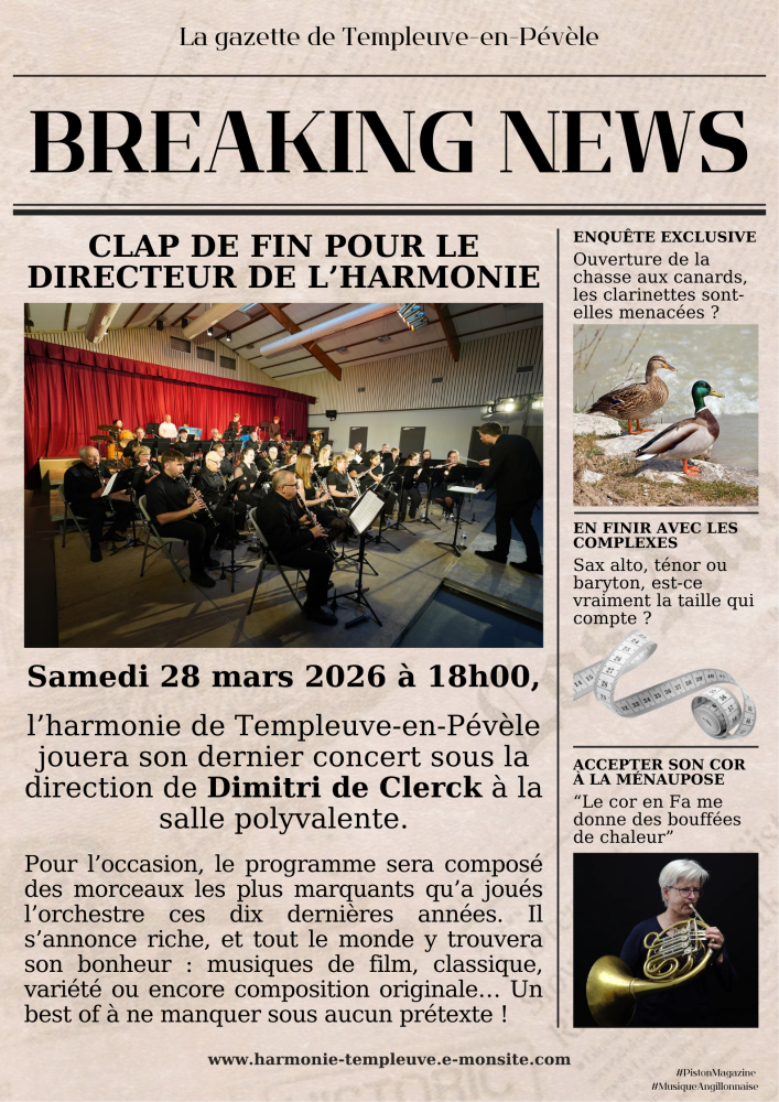 Personnes à mobilité réduite Enfants en poussetteDimitri De Clerck , directeur de l'harmonie de Templeuve-en-Pévèle depuis 2013 quittera sa fonction prochainement.